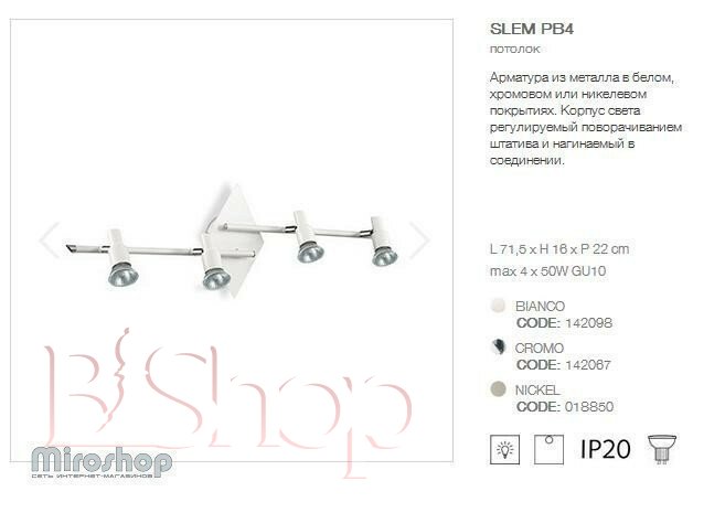 Количество ламп: 4. Тип цоколя: GU10. Высота (см): 22. Ширина (см): 16. Мощность лампы (Вт): 50. Длина (см): 71.5.