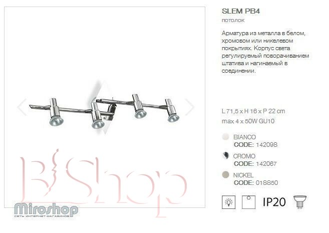 Спот Ideal Lux SLEM PL4 CROMO (142067) (96736)