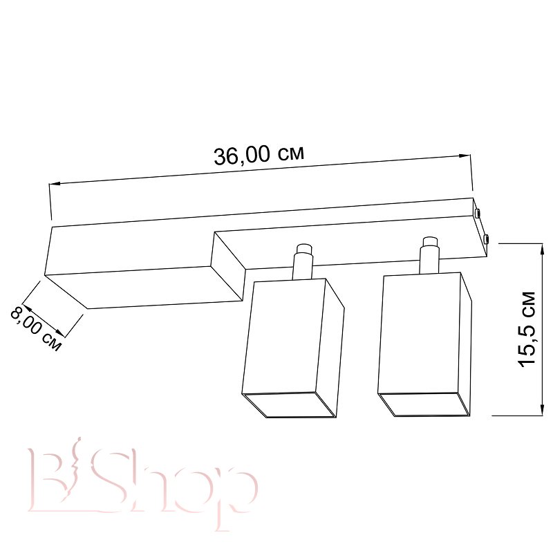 Количество ламп: 2. Тип цоколя: GU10. Высота (см): 15.5. Ширина (см): 8. Мощность лампы (Вт): 50. Длина (см): 36.