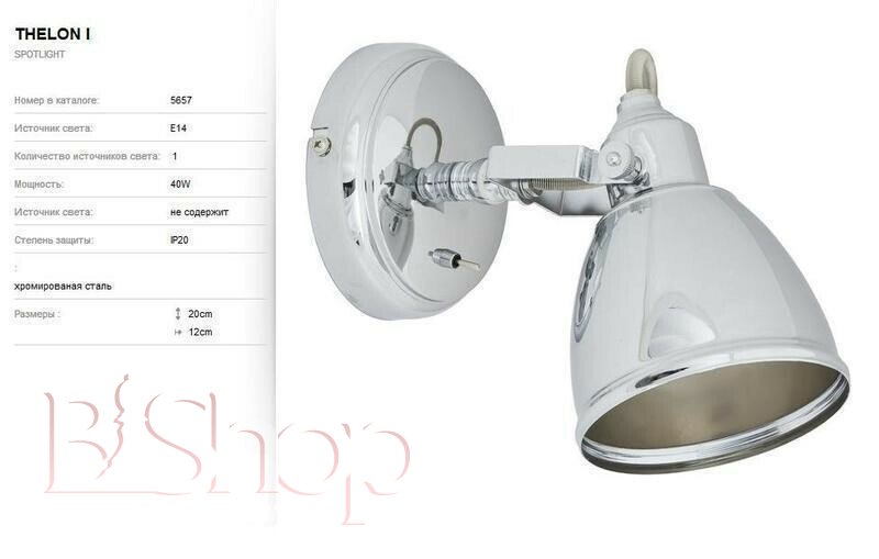 Количество ламп: 1. Тип цоколя: E14. Высота (см): 20. Глубина (см): 12. Мощность лампы (Вт): 40.