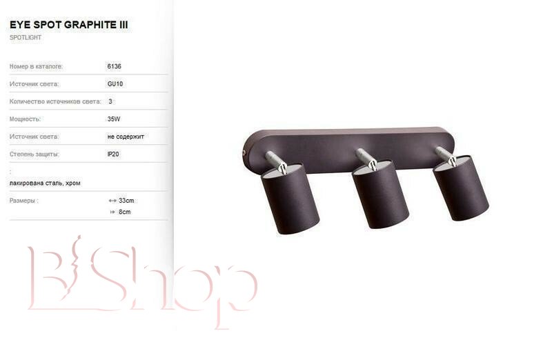 Количество ламп: 3. Тип цоколя: GU10. Ширина (см): 33. Глубина (см): 8. Мощность лампы (Вт): 35.