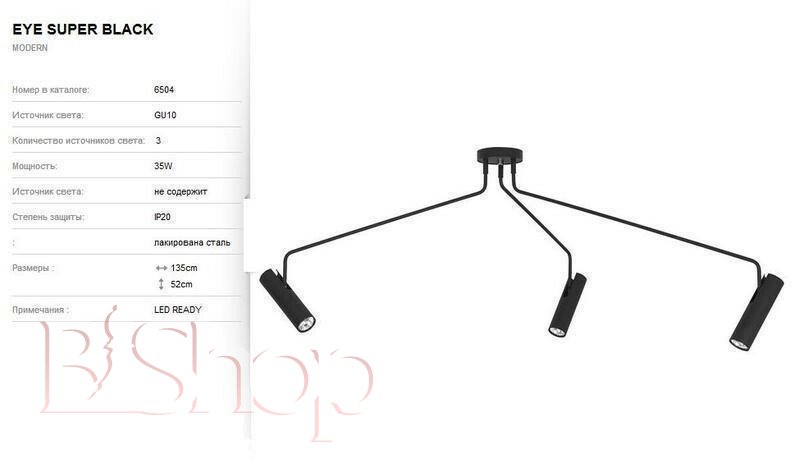 Количество ламп: 3. Тип цоколя: GU10. Высота (см): 52. Ширина (см): 135. Мощность лампы (Вт): 35.