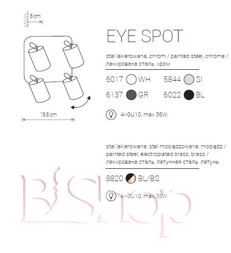 Количество ламп: 4. Тип цоколя: GU10. Ширина (см): 19.5. Глубина (см): 8. Мощность лампы (Вт): 35. Длина (см): 19.5.