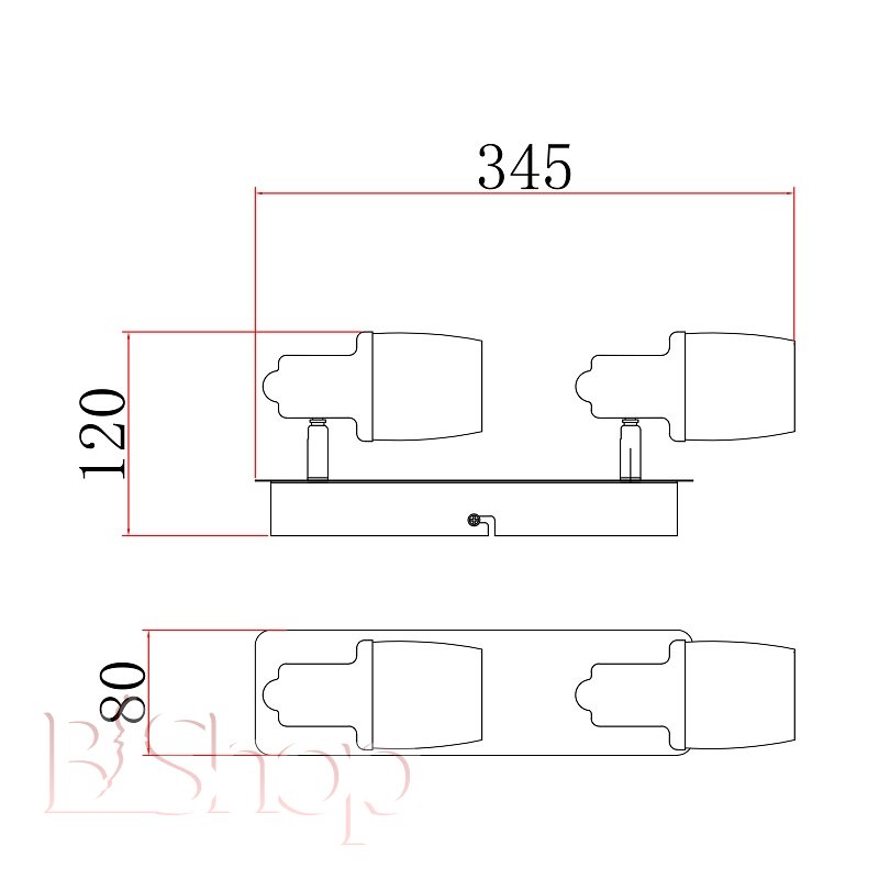 Количество ламп: 2. Тип цоколя: GU10. Высота (см): 12. Ширина (см): 8. Мощность лампы (Вт): 50. Длина (см): 34.5.
