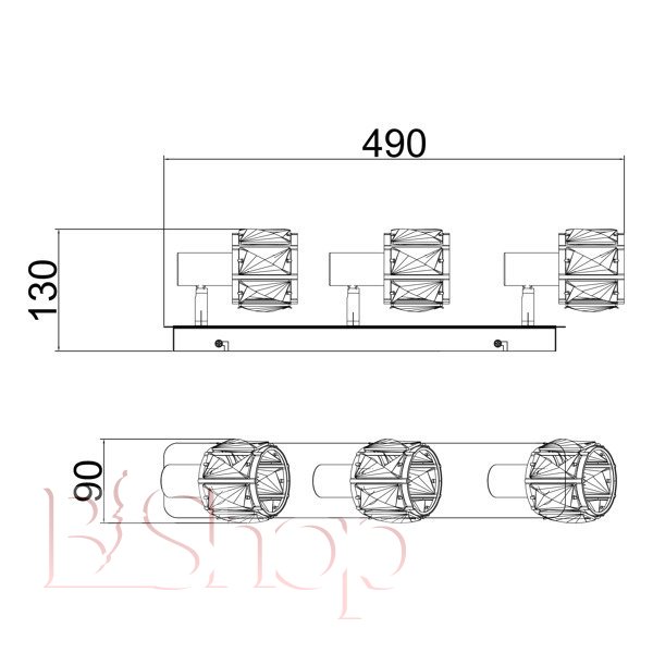 Количество ламп: 3. Тип цоколя: E14. Высота (см): 13. Ширина (см): 9. Мощность лампы (Вт): 40. Длина (см): 49.
