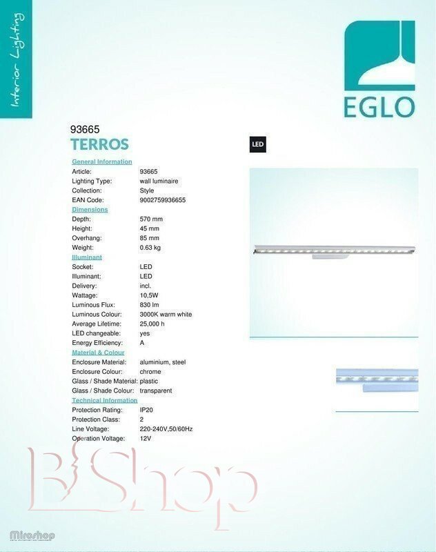 Количество ламп: 1. Тип цоколя: LED. Высота (см): 5. Мощность лампы (Вт): 10. Длина (см): 57.