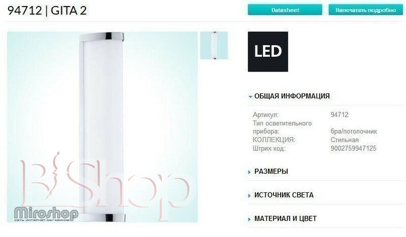 - Категория товара: Светильники для ванной