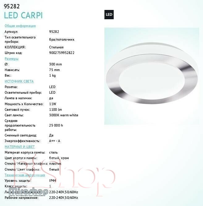 Светильник для ванной Eglo 95282 LED Capri (84421)