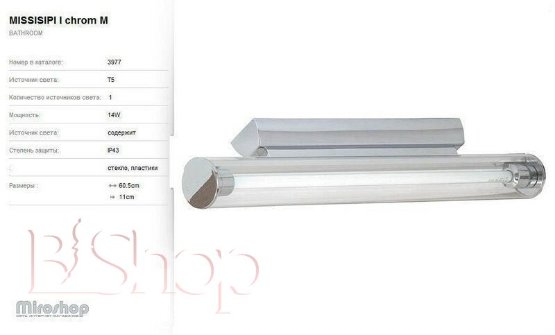 - Тип товара: Светильник для ванной