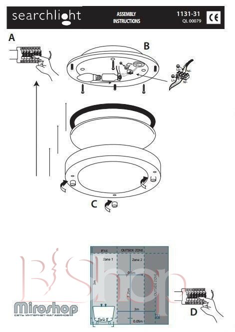 Светильник для ванной Searchlight 1131-31CC Bathroom Flush (20510)