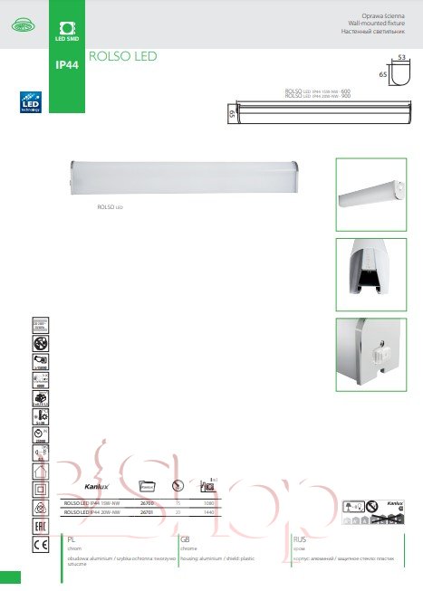 Светильник линейный Kanlux ROLSO LED IP44 20W-NW (26701)