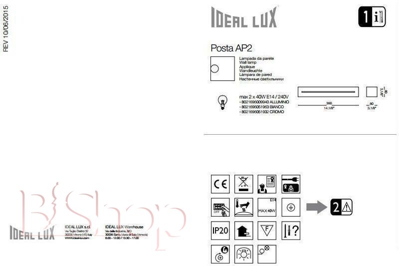 Количество ламп: 2. Тип цоколя: E14. Высота (см): 8. Мощность лампы (Вт): 40. Длина (см): 36.