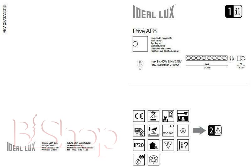 Светильник настенный Ideal Lux PRIVE AP8 (045634)