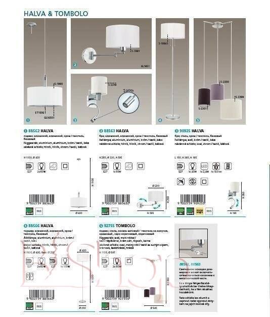 - Материал плафонов: Ткань