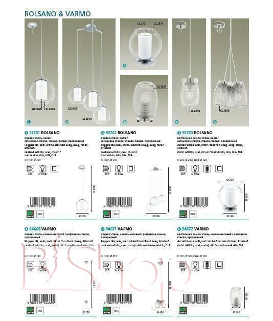 Светильник подвесной Eglo 92762 Bolsano (57937)