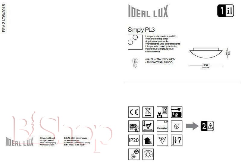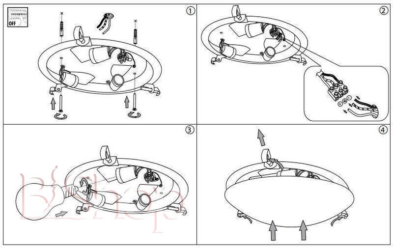 Количество ламп: 3. Тип цоколя: E27. Высота (см): 12. Мощность лампы (Вт): 60. Диаметр (см): 40.