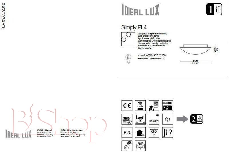 Светильник потолочный Ideal Lux SIMPLY PL4 (007991) (48914)