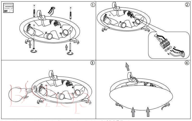 Количество ламп: 4. Тип цоколя: E27. Высота (см): 13. Мощность лампы (Вт): 60. Диаметр (см): 50.