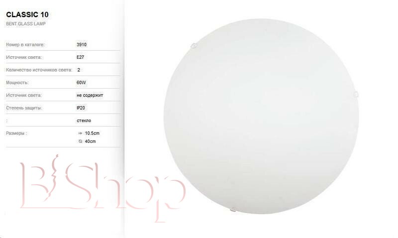 Количество ламп: 2. Тип цоколя: E27. Глубина (см): 10.5. Мощность лампы (Вт): 60. Диаметр (см): 40.