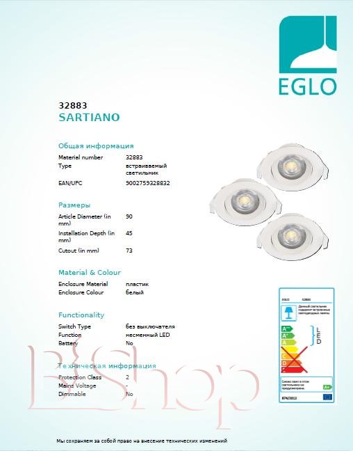 Точечный светильник Eglo 32883 SARTIANO (14591)
