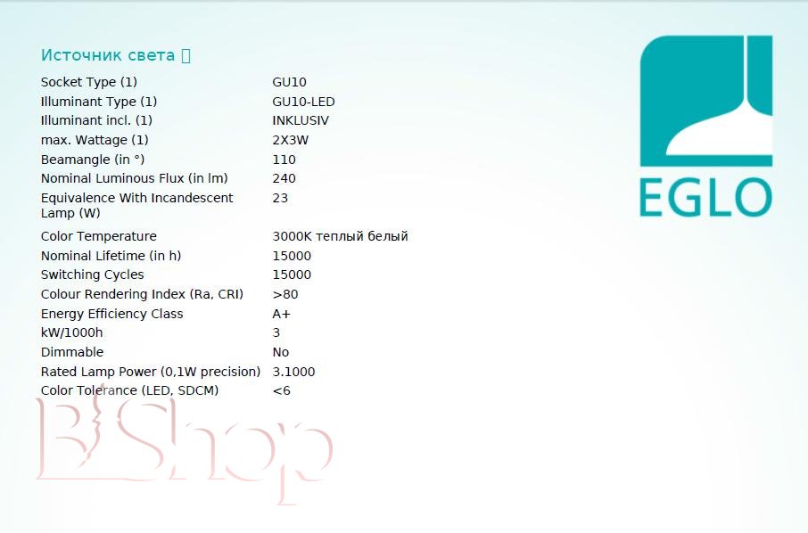 - Общая мощность ламп (Вт): 3 Вт
