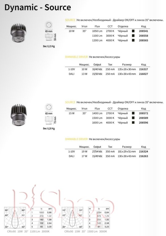 - Дополнительная информация: Драйвер ON/OFF и линза 35° включены