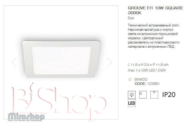 Точечный светильник Ideal Lux GROOVE FI1 10W SQUARE 3000K (123981) (94254)