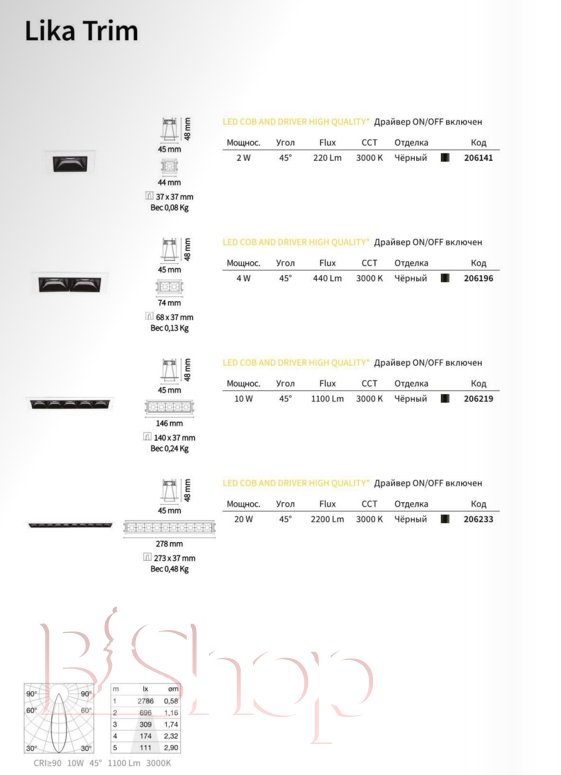 - Дополнительная информация: Драйвер ON/OFF включен. Внутри плафон черного цвета