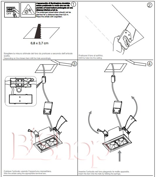 - Размер врезного отверстия (см): 3.7х6.8 см