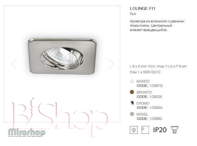 Точечный светильник Ideal Lux LOUNGE FI1 NICKEL (138992) (94263)