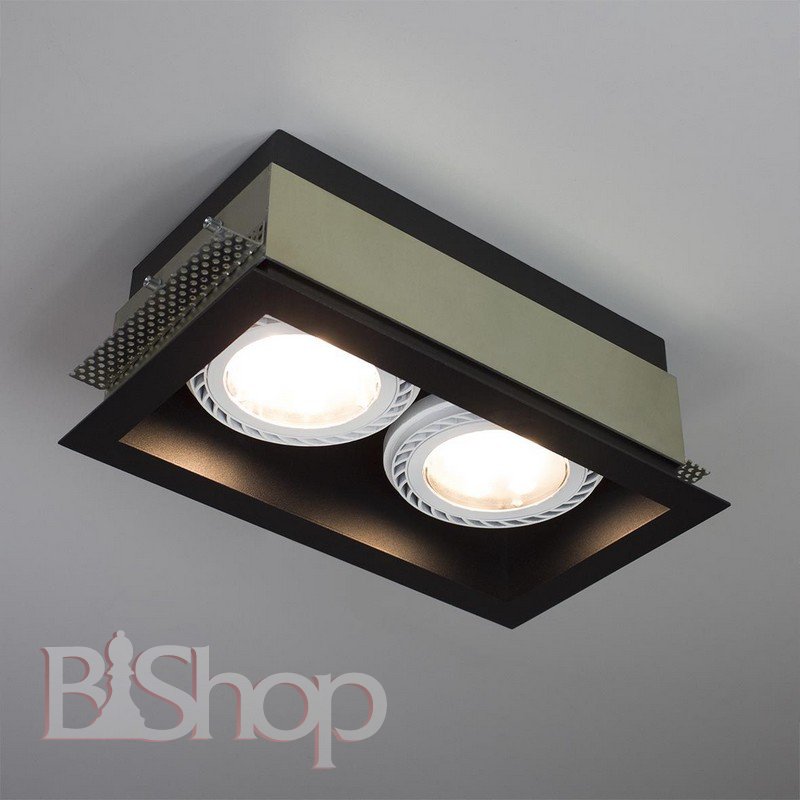 Количество ламп: 2. Тип цоколя: GU10. Ширина (см): 15.7. Мощность лампы (Вт): 50. Длина (см): 27. Глубина врезки (см): 11. Размер врезного отверстия (см): 13.5х25.5.