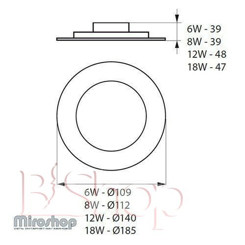 Количество ламп: 1. Тип цоколя: LED. Мощность лампы (Вт): 6. Диаметр (см): 10.9. Размер врезного отверстия (см): 8.7.