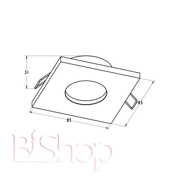 Количество ламп: 1. Тип цоколя: GU10. Ширина (см): 8.5. Мощность лампы (Вт): 50. Длина (см): 8.5. Глубина врезки (см): 3.1.