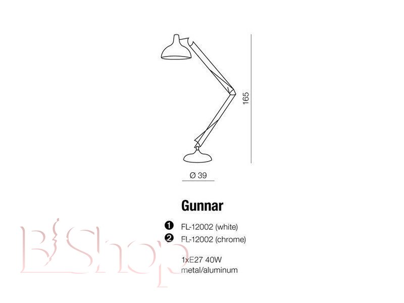 Количество ламп: 1. Тип цоколя: E27. Высота (см): 165. Ширина (см): 39. Мощность лампы (Вт): 60.