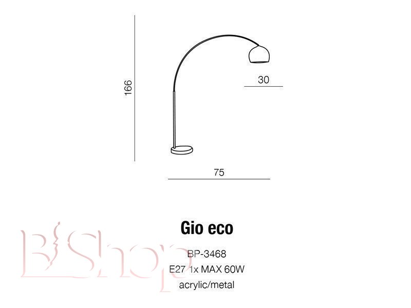Количество ламп: 1. Тип цоколя: E27. Высота (см): 166. Ширина (см): 30. Мощность лампы (Вт): 60. Длина (см): 75.