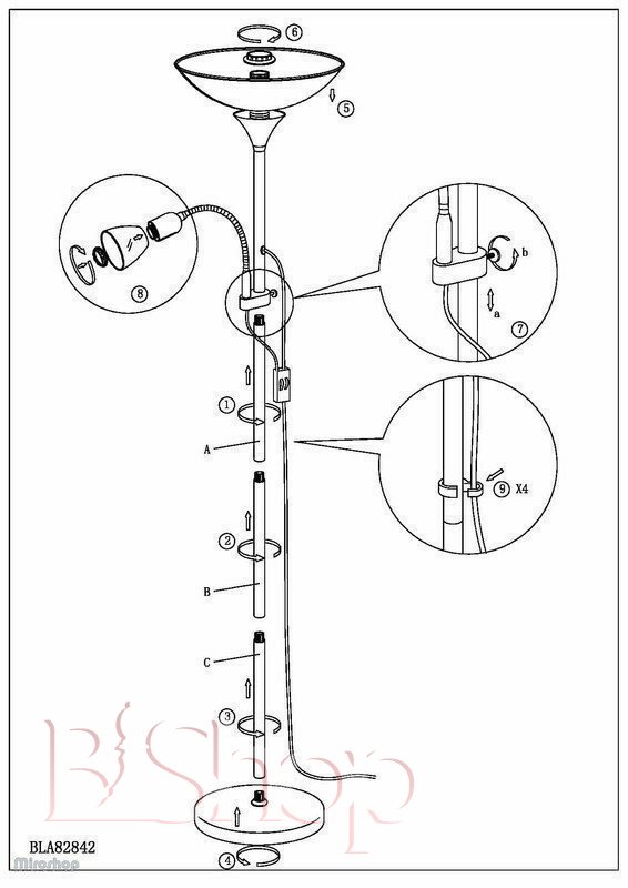 Количество ламп: 1. Тип цоколя: E27. Высота (см): 178. Мощность лампы (Вт): 100. Диаметр (см): 30.