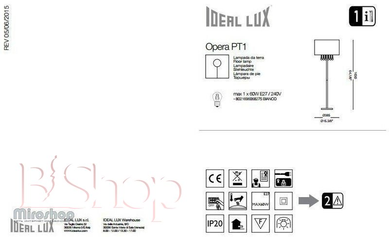 Торшер Ideal Lux OPERA PT1 BIANCO (068275) (56340)