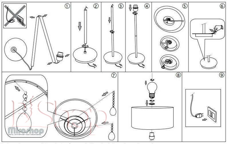 Количество ламп: 1. Тип цоколя: E27. Высота (см): 163. Мощность лампы (Вт): 60. Диаметр (см): 38.5.