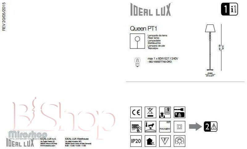 Торшер Ideal Lux QUEEN PT1 (077765) (56380)