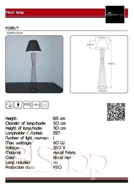 Количество ламп: 1. Тип цоколя: E27. Высота (см): 165. Мощность лампы (Вт): 60. Диаметр (см): 60.