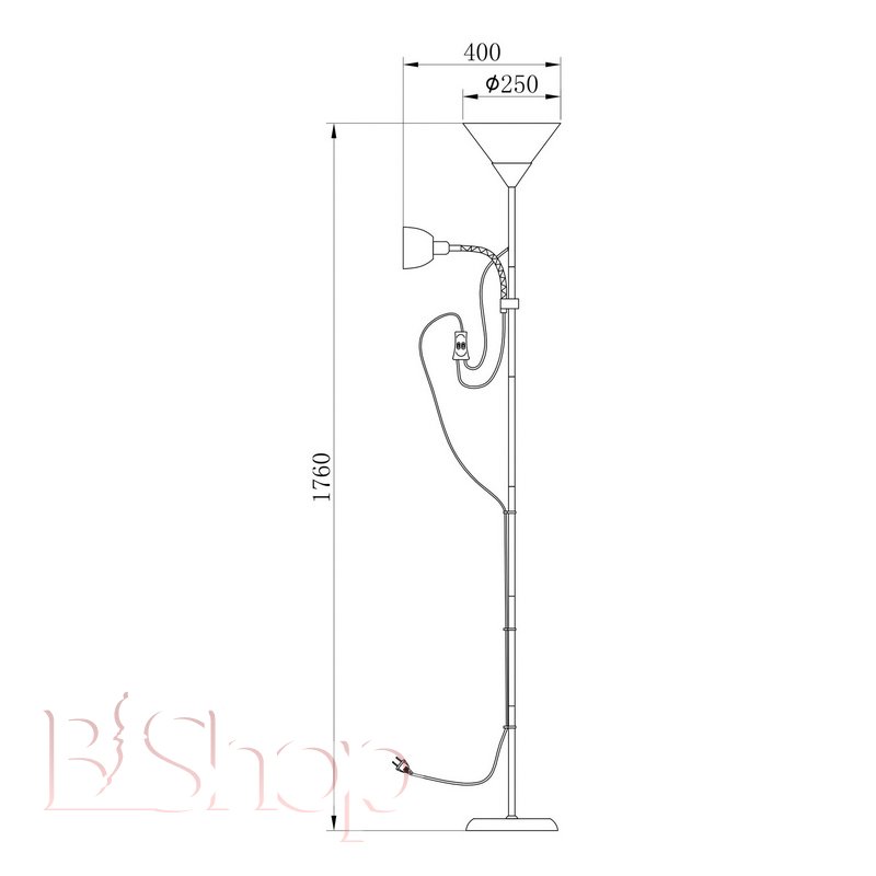 Количество ламп: 1. Тип цоколя: E27. Высота (см): 176. Ширина (см): 25. Мощность лампы (Вт): 100.
