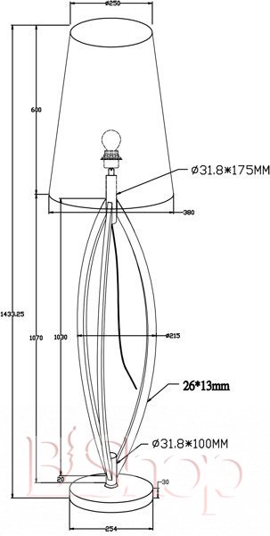 Количество ламп: 1. Тип цоколя: E27. Высота (см): 143.3. Мощность лампы (Вт): 60. Диаметр (см): 38.