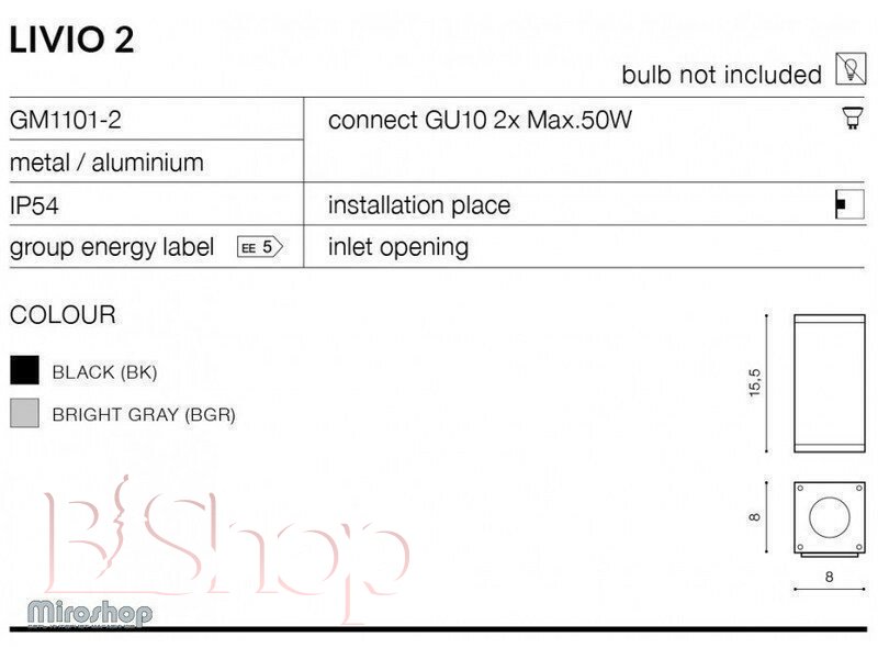 Количество ламп: 2. Тип цоколя: GU10. Высота (см): 15.5. Ширина (см): 8. Мощность лампы (Вт): 50. Длина (см): 8.