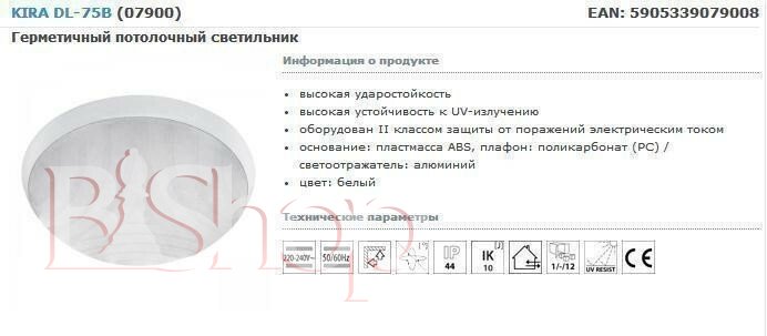 Количество ламп: 1. Тип цоколя: E27. Высота (см): 10. Мощность лампы (Вт): 75. Диаметр (см): 30.4.