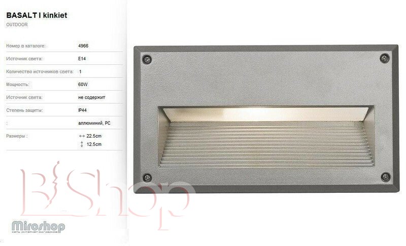 Количество ламп: 1. Тип цоколя: E14. Высота (см): 12.5. Ширина (см): 22.5. Мощность лампы (Вт): 60.