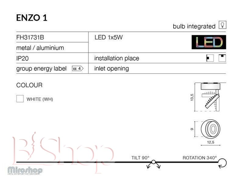 Кількість ламп: 1. Тип цоколя: LED. Висота (див): 13.5. Ширина (див): 9. Потужність лампи (Вт): 5. Довжина (див): 12.5.