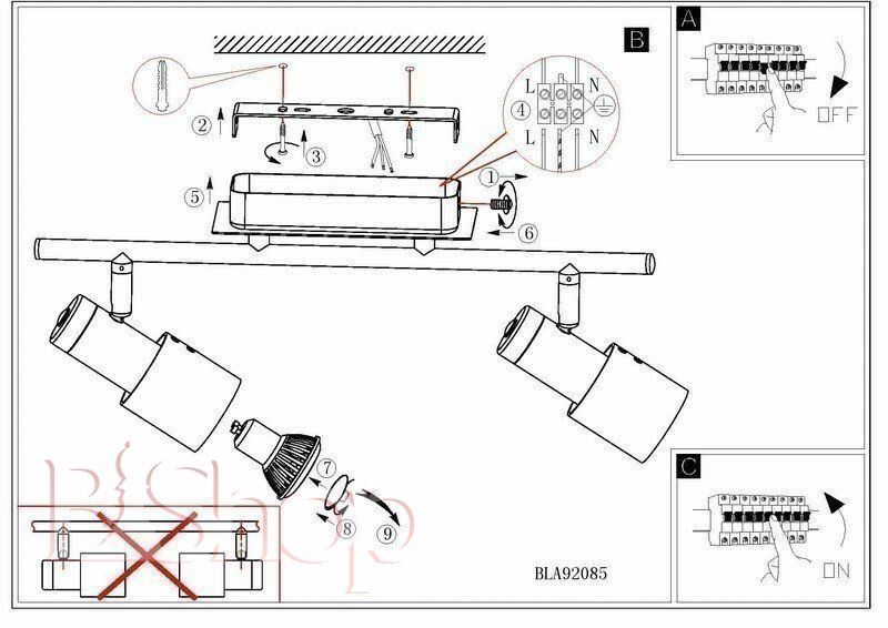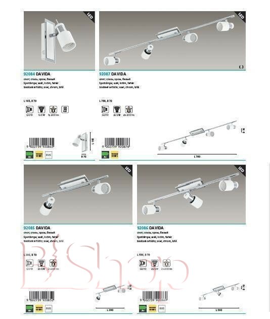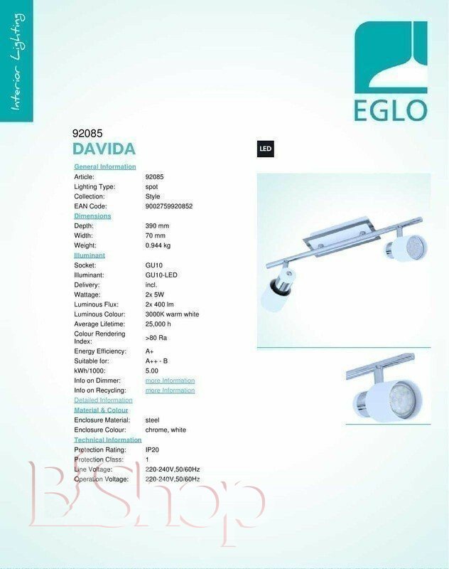 Кількість ламп: 2. Тип цоколя: GU10. Ширина (див): 7. Потужність лампи (Вт): 5. Довжина (див): 39.