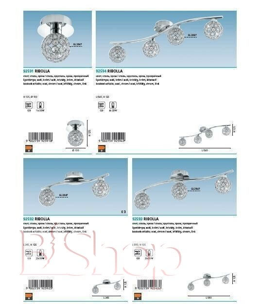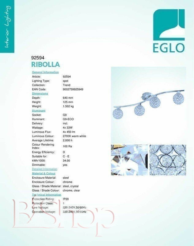 Кількість ламп: 4. Тип цоколя: G9. Висота (див): 13. Потужність лампи (Вт): 33. Довжина (див): 64.