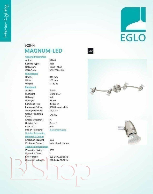 Кількість ламп: 4. Тип цоколя: GU10. Ширина (див): 11. Потужність лампи (Вт): 3. Довжина (див): 65.