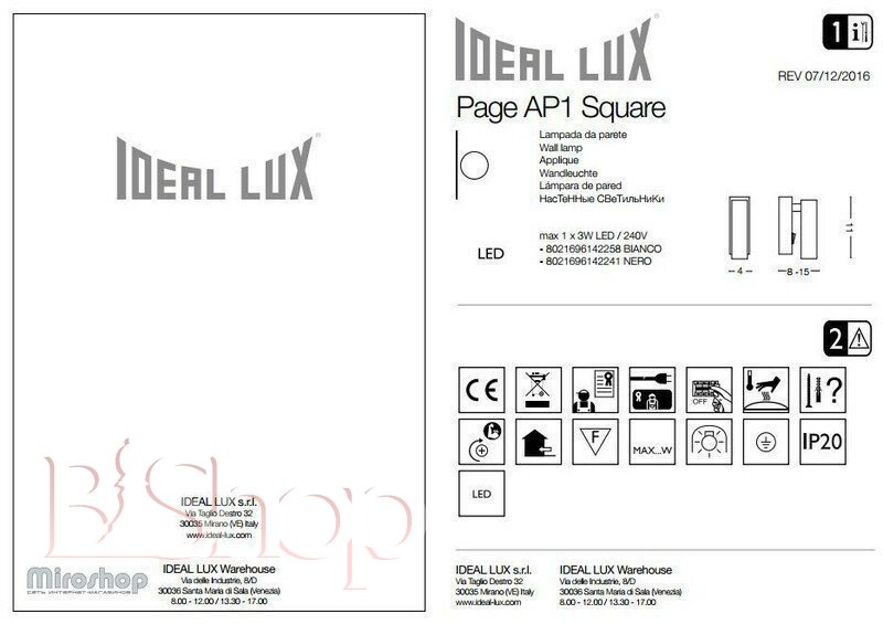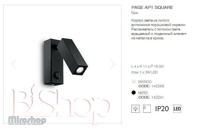 Спот Ideal Lux PAGE AP1 SQUARE NERO (142241) (93751)